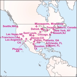 Flight Journal Magazine, USA - Map of World showing all the ancient airports and highlighting the air routes worldwide. |