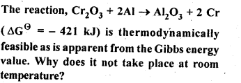 Ans: This is explained on the basis of Keq, the equilibrium constant. In the given redox reaction, all reactants and products are solids at room temperature, so, there is no equilibrium between the reactants and products and hence the reactions does not occur at RT. At high temperature, Cr melts and values of TAS increases. As a result, the value of