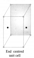 (ii) In a face-centeredunit cell, constituent particles are located at all the corners as well as at the centres of all the faces.Inend-centeredunit cell, constituent particles are located at all the corners as well as at the centres of two opposite faces.