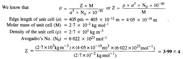 1.18. An element with molar mass 2:7 x 10-2kg mol-1 forms a cubic unit cell with edge length 405 pm. If its density is 2:7 x 103 kg m-3, what is the nature of the cubic unit cell ?