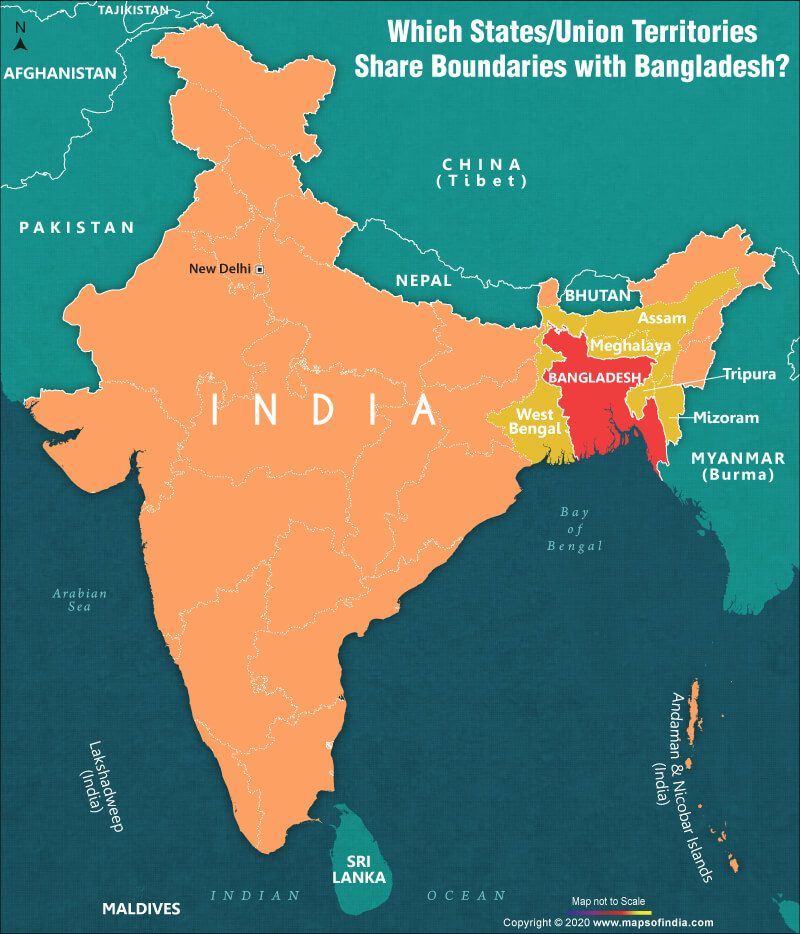 Which States/Union Territories Share Boundaries with Bangladesh?