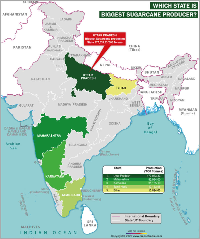 Uttar Pradesh is the largest producer of sugarcane.