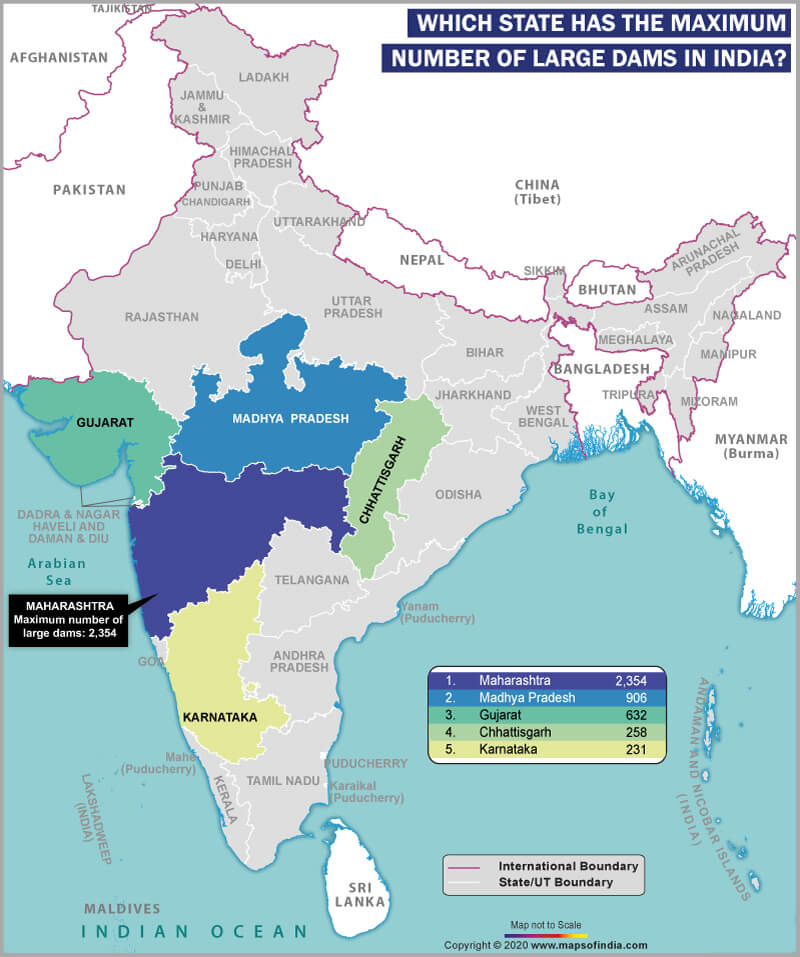 The State of Maharashtra tops the list of the highest number of large dams in India as per the data of the National Register of Large Dam (NRLD) of 2018.