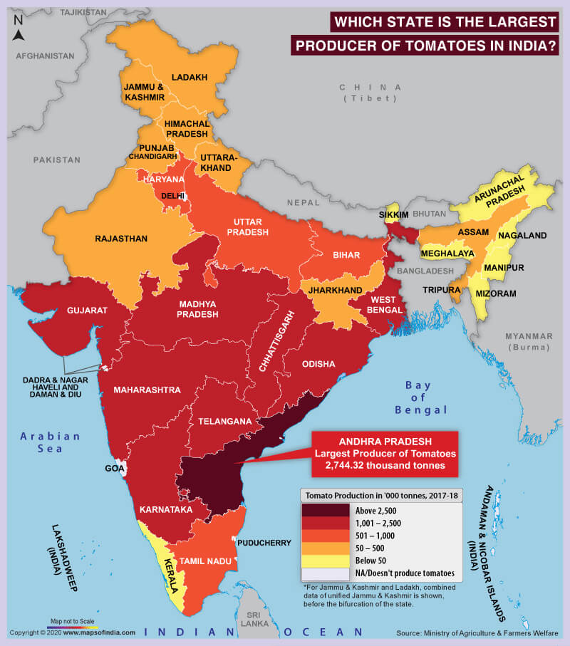 Andhra Pradesh is the largest producer of tomatoes in India.