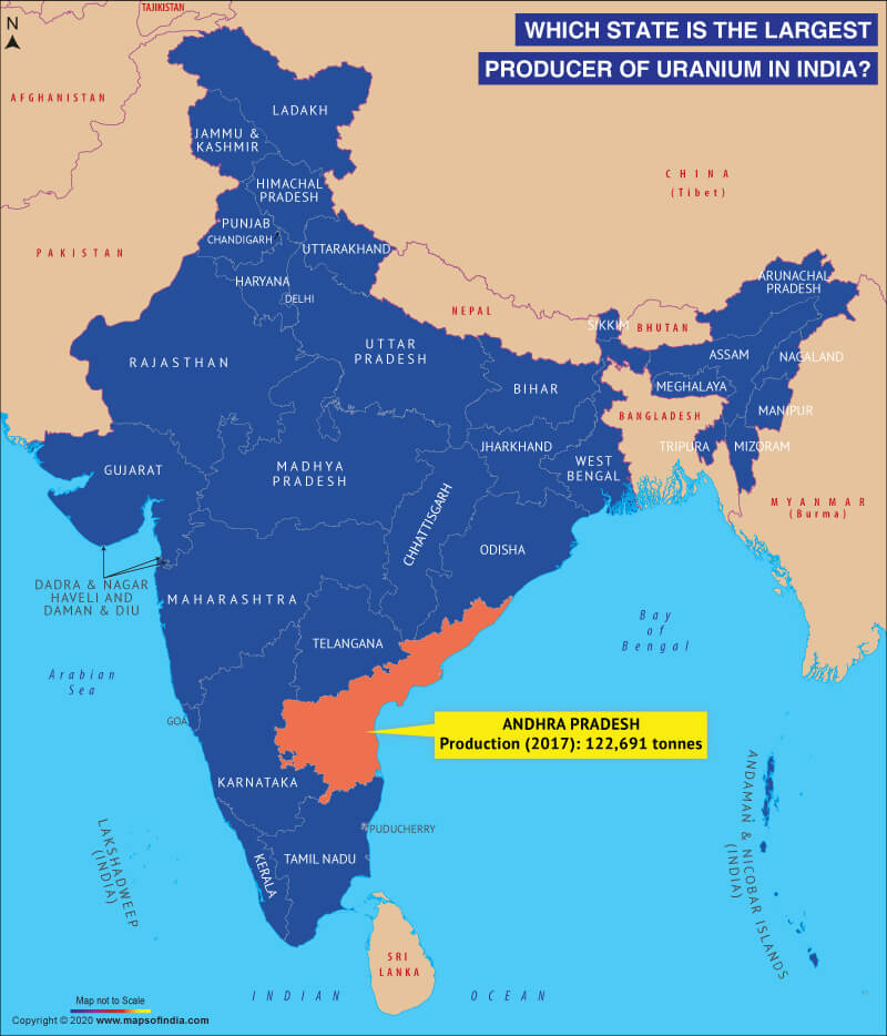 The state of Andhra Pradesh is the largest producer of uranium in India.