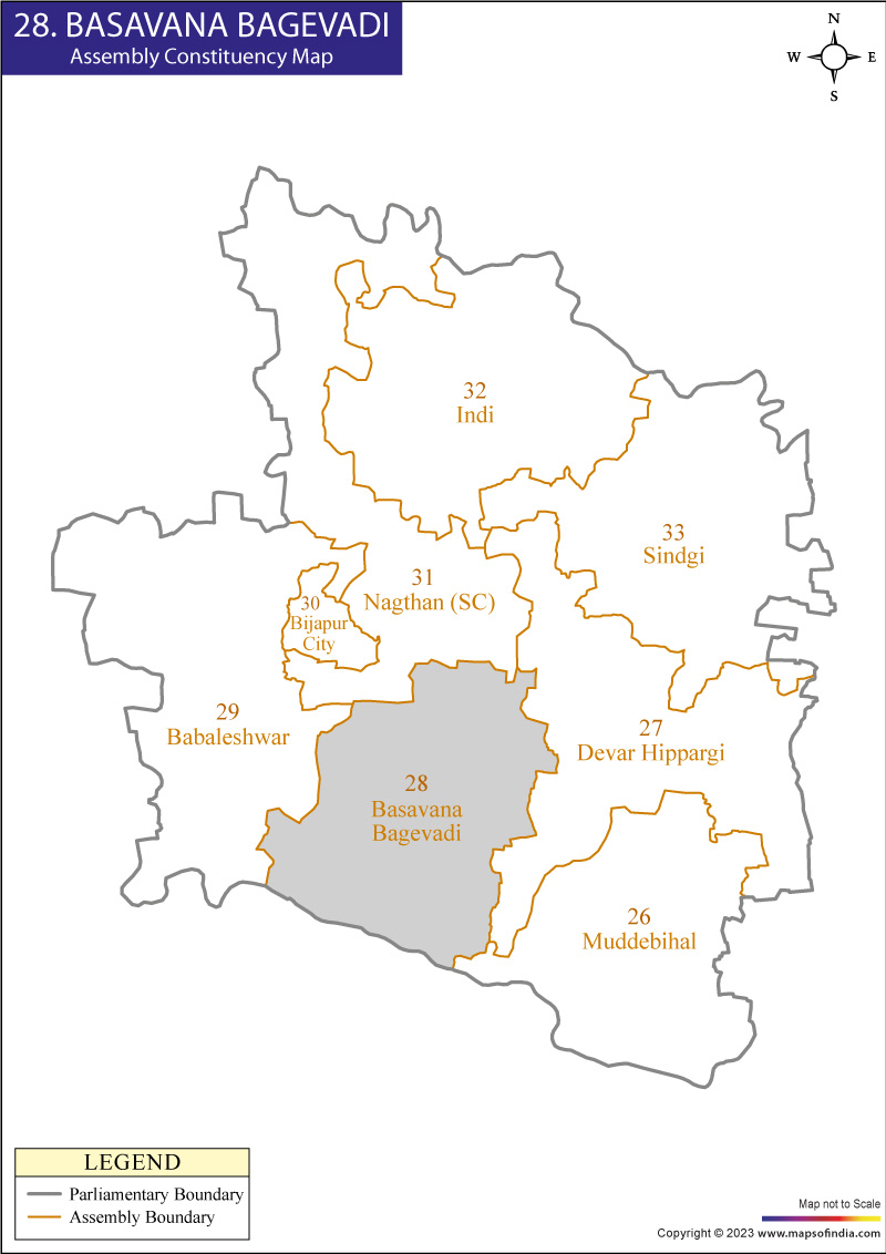 Get Basavana Bagevadi election result on MapsofIndia.com. Basavana Bagevadi is located in Bijapur district, Karnataka. The current ruling party is Indian National Congress, the MLA of the Shivanand Patil constituency seat is Prabhu Chauhan. Basavana Bagevadi vidhan sabha election 2023 result be fully updated Today.