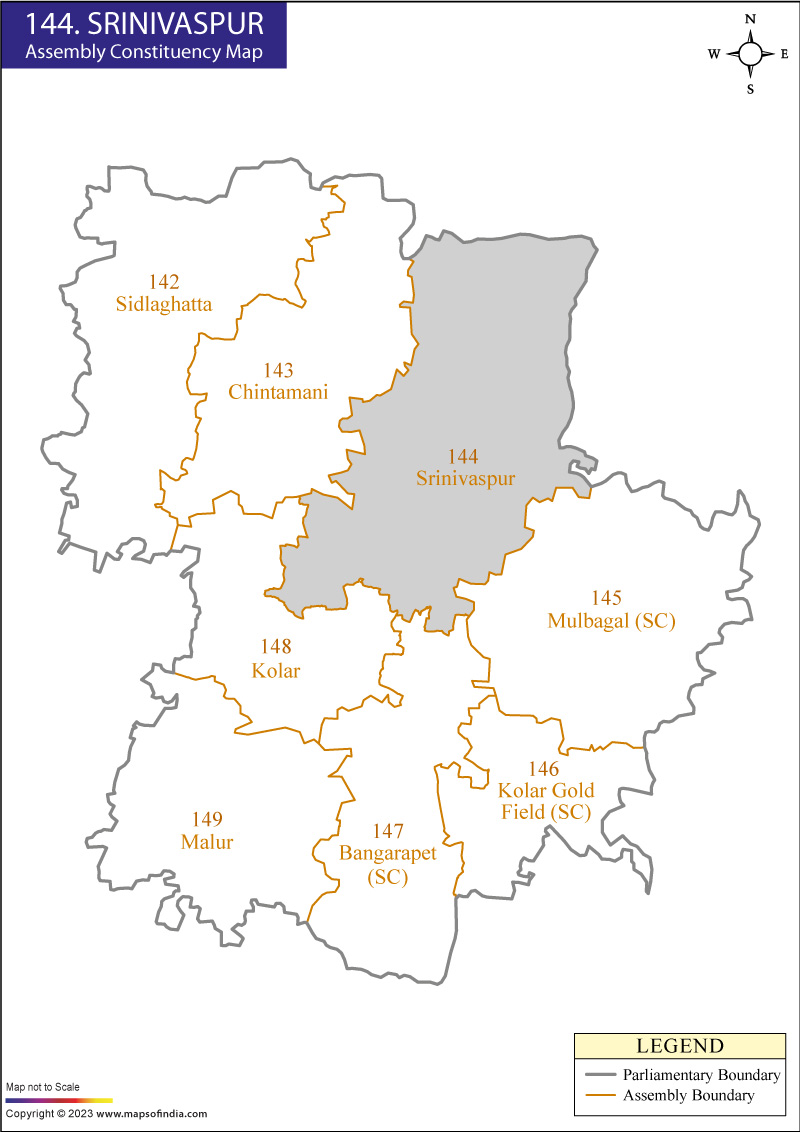 Get Srinivaspur election result on MapsofIndia.com. Srinivaspur is located in Kolar district, Karnataka. The current ruling party is Indian National Congress, the MLA of the Srinivaspur constituency seat is K. R. Ramesh Kumar Srinivaspur vidhan sabha election 2023 result be fully updated Today.