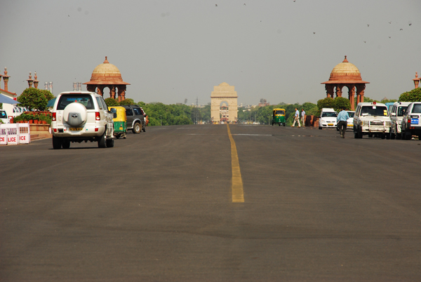 India Gate is visible from the entrance of Rashtrapati Bhawan through the heat mirages. It looks close but it is at least 3km away from there. This little elevation of the Raisina Hill gives you a new perspective. The alignment of the buildings can't be more perfect. Even the black road with a yellow line in the middle surrounded by red earth on either side of the road now looks more meaningful than ever.