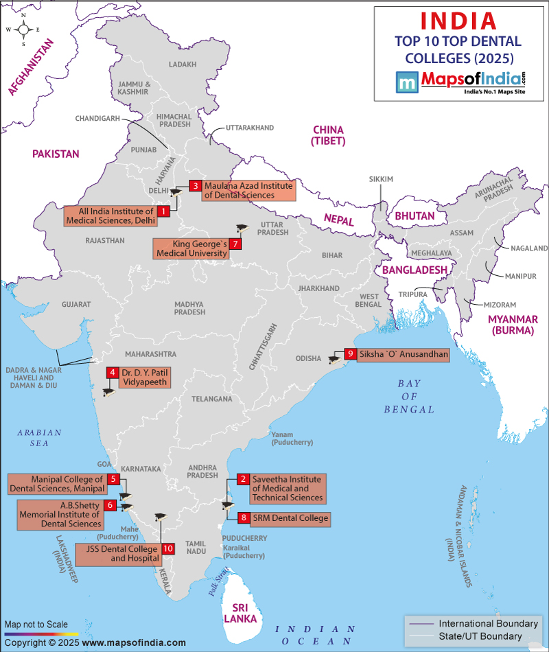 | *The Map showing Dental Colleges in All the States of India. | Disclaimer |
