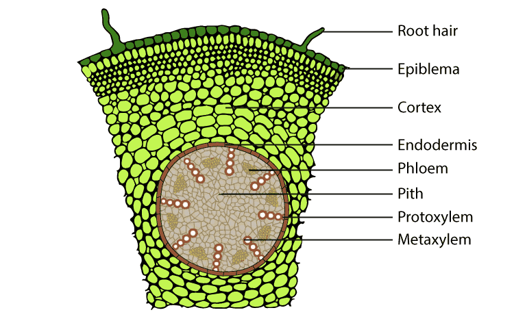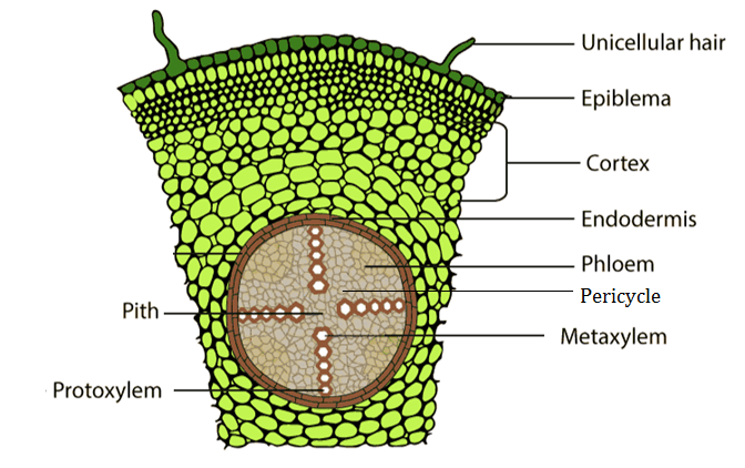 (a) Monocot root and Dicot root (b) Monocot stem and Dicot stem.