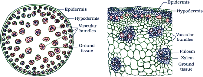 Vascular bundles are arranged in a ring