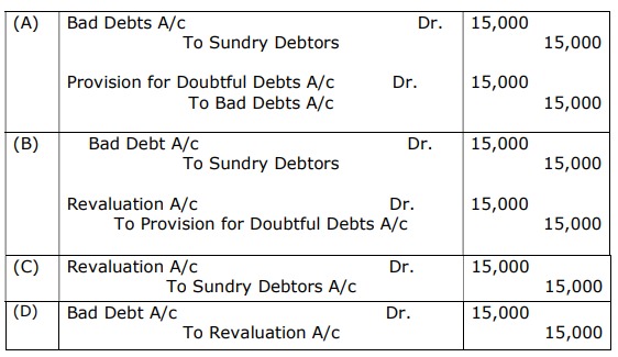 The correct answer is ₹5,000 Debited to Revaluation Account.