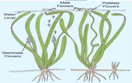 10. In the dioecious aquatic plant shown, identify the characteristics of the male flowers