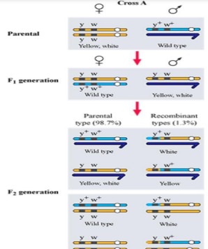 When yellow bodied (y), white eyed (w) Drosophila females were hybridized with