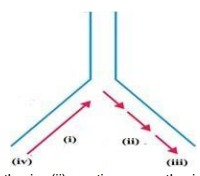 - (i)- continuous synthesis , (ii)- discontinuous synthesis (iii) 3’ end (iv) 5’end