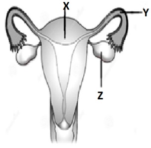 at the site X, Y and Z respectively in the human female reproductive system (Figure