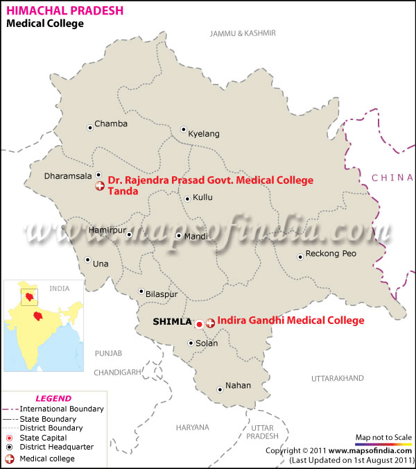 *The Map showing Medical Colleges in the State Himachal Pradesh. |