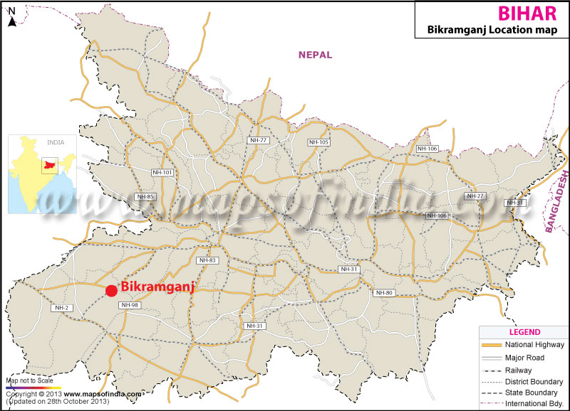 | *Map showing the location of Bikramganj city in Bihar. | Disclaimer |