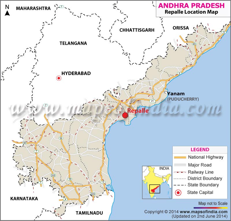 | *Map showing the location of Repalle city in Andhra Pradesh. | Disclaimer |