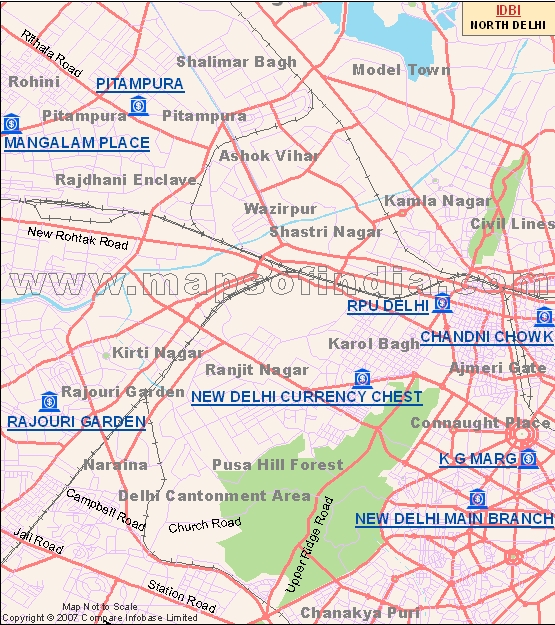 *Map showing all the locations of IDBI Bank in North Delhi.