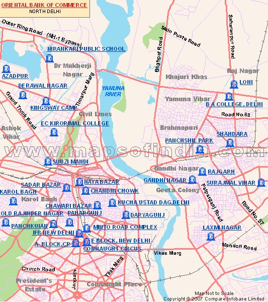*Map showing all the locations of Oriental Bank of Commerce in North Delhi.
