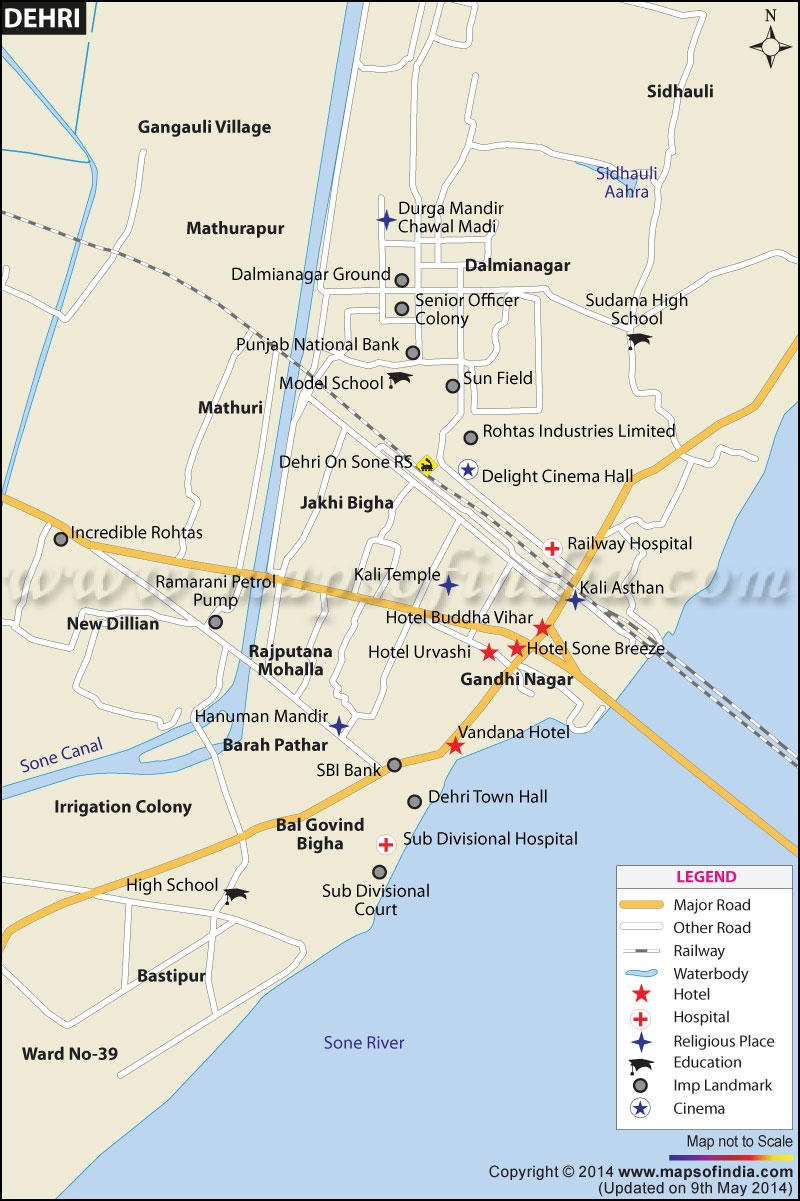*Dehri City Map Showing Roads, Railways, Rivers, Hotels, Hospitals, etc