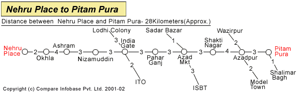 Road Distance Guide from Nehru Place To Pitam Pura |