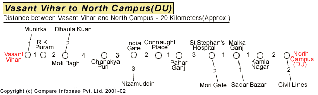 Road Distance Guide from Vasant Vihar To North Campus |