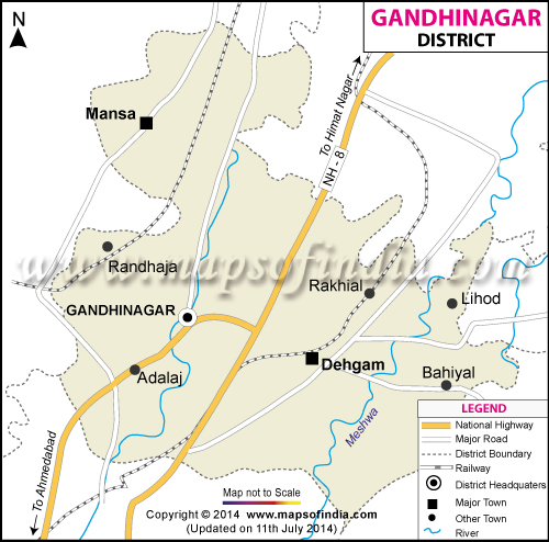 | *Gandhi Nagar District Map highlights the National Highways, Major Roads, District Headquarter, etc. | Disclaimer |