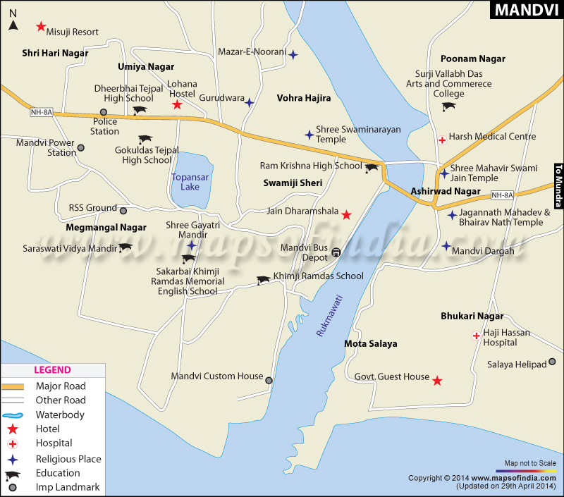 | *Mandvi city map showing roads, railways, rivers, hotels, hospitals, etc. | Disclaimer |