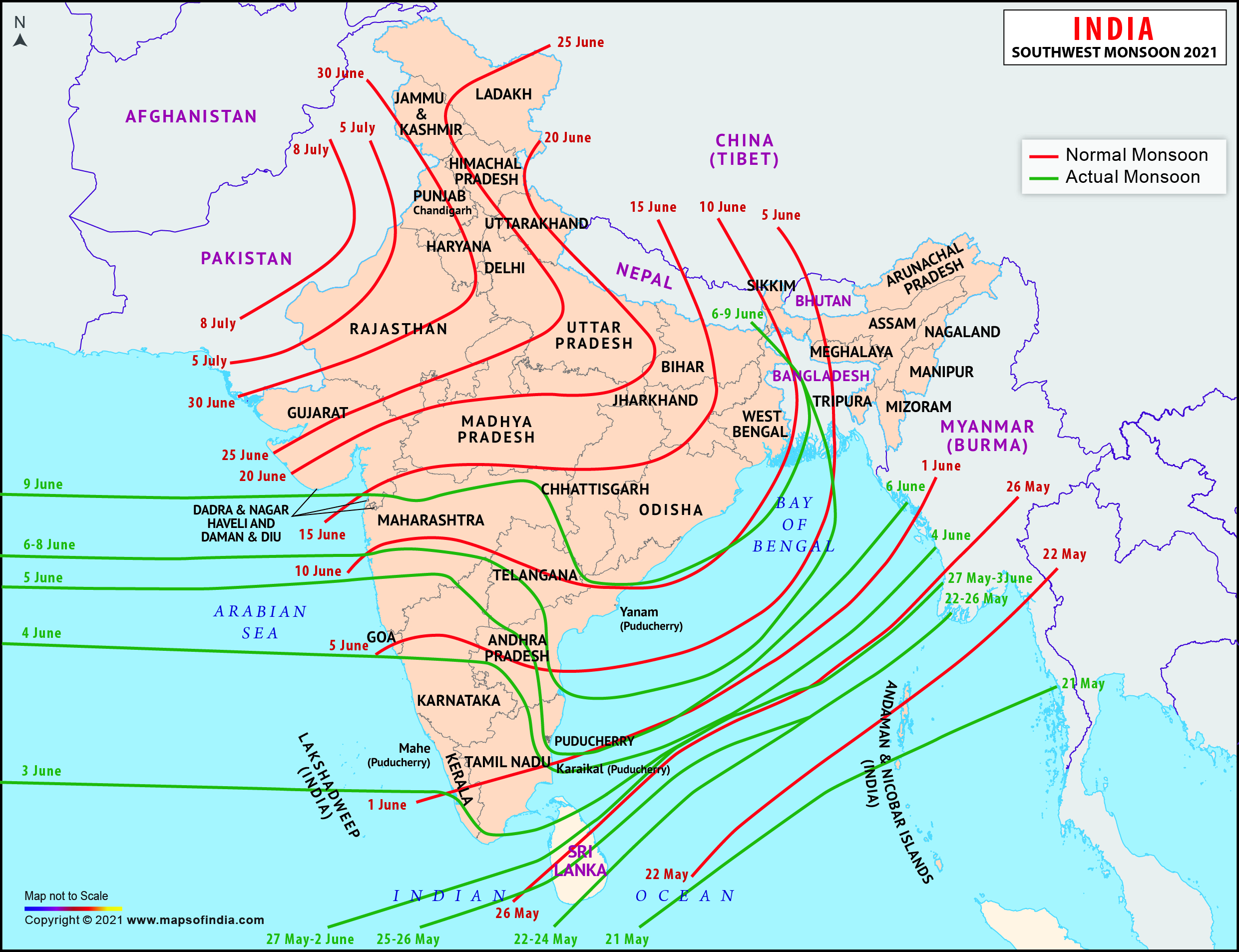 | *Map showing South West Monsoon in India. | Disclaimer |
