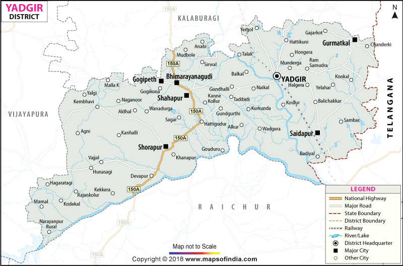 | *District Map of Yadgir highlights national highway, major roads, railways, rivers, etc. | Disclaimer |