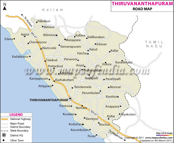 | *Map showing the road network in the Thiruvananthapuram District, Kerala. | Disclaimer |