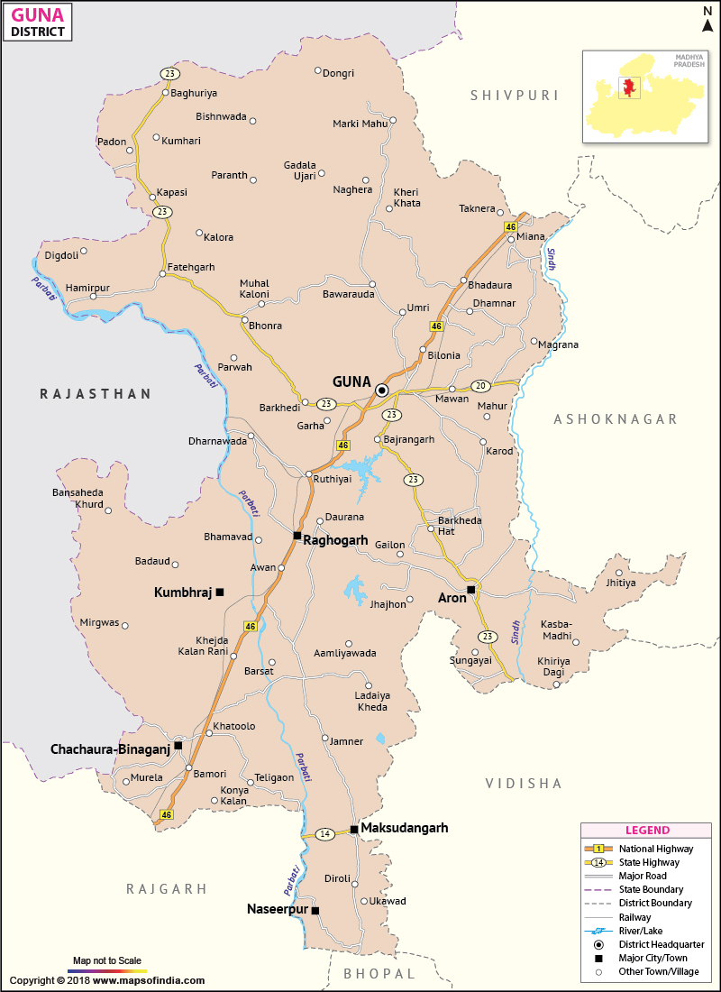 Situated on the north east region of the Malwa plateau, the Guna district covers an area of 6484.63 sq. km.