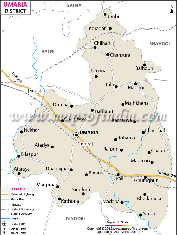 | Tehsils | Bandhavgarh (Umaria), Chandia, Nowrozabad, Manpur, Pali |