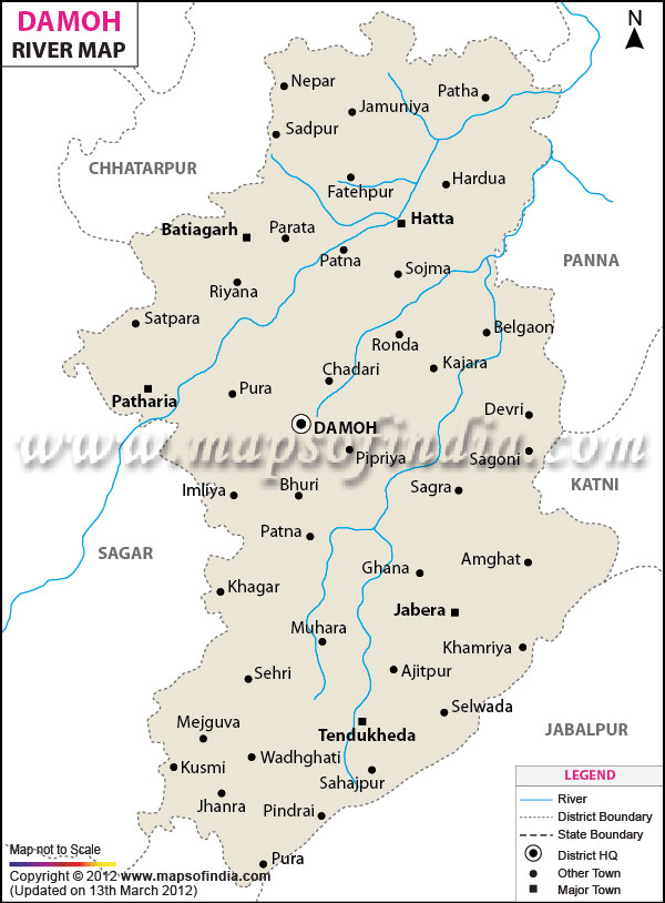 *Map showing rivers flowing in and out of Damoh. Disclaimer