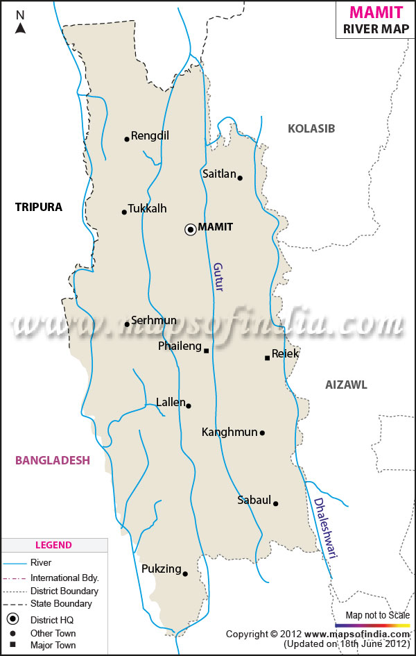 River Map of Mamit Kolasib Aizwal TRIPURA Lunglei Serchhip