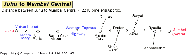 | *Map Showing Road Companion Guide from Juhu to Mumbai Central via Mahim Fort. | Disclaimer |