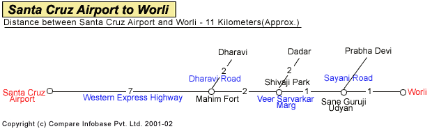 Road Distance Guide from Santa Cruz Airport to Worli |