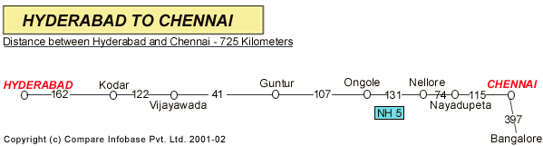 | *The Map showing the Road Distance Guide from Hyderabad to Chennai | Disclaimer |