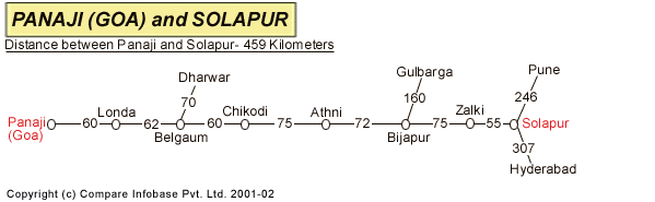 | *The Map showing the Road Distance Guide from Panaji to Solapur | Disclaimer |