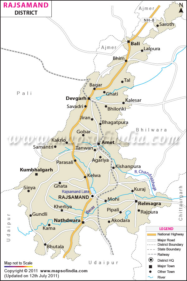 | Tehsils | Amet, Bhim, Deogarh, Kumbhalgarh, Nathdwara, Railmagra, Rajsamand |