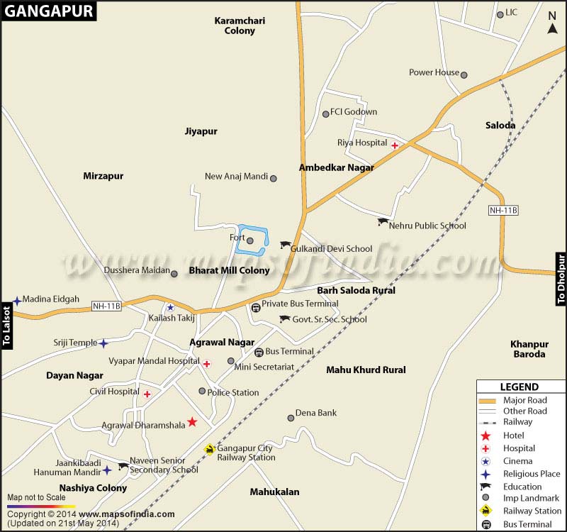 *Map showing roads, hotels, hospitals and other places of interest in Gangapur City. Disclaimer