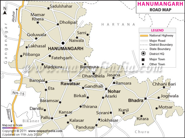 Road Map of Hanumangarh PUNJAB ROADS HARYANA ROADS Churu Roads  Bikaner Roads  Sri Ganganagar Roads