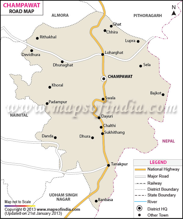 | * Map showing entire road network of Champawat district, Uttarakhand. | Disclaimer |