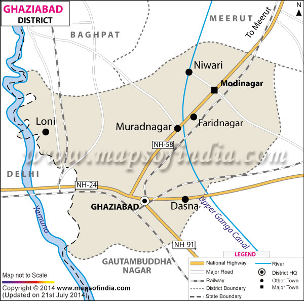 *The Map showing the National Highway, Major roads, other Roads, District Headquarter, Town, etc in the Ghaziabad District, Uttar Pradesh |