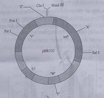 13. (a) Cloning of genes. play a very significant role in genetic engineering, helping the transfer of desirable foreign genes into different hosts. The scientists, to make this process easier and effective are creating engineered vectors in such a way that they help easy linking of foreign DNA and selection of recombinants from non recombinants. ‘pBR322’ is one such engineered vectors developed by scientists. A diagram of an engineered vector pBR322 is given below :