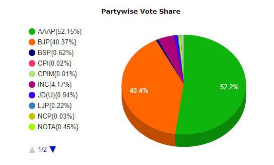 Aam Aadmi Party looks set to hold Delhi crown; BJP remains a distant second in poll results.