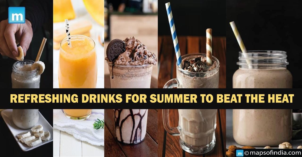 - Mango shake: Mangoes are the king of the summer season. There are very few people who can reject the delightful taste of mango. Mango shakes can be easily made in the home. Take 1-2 mangoes, add 2-3 tablespoons sugar and one full cup of milk. Blend them in a mixer, and the tasty mango shake is ready. Add two scoops of vanilla or mango-flavoured ice cream for thick shake consistency.