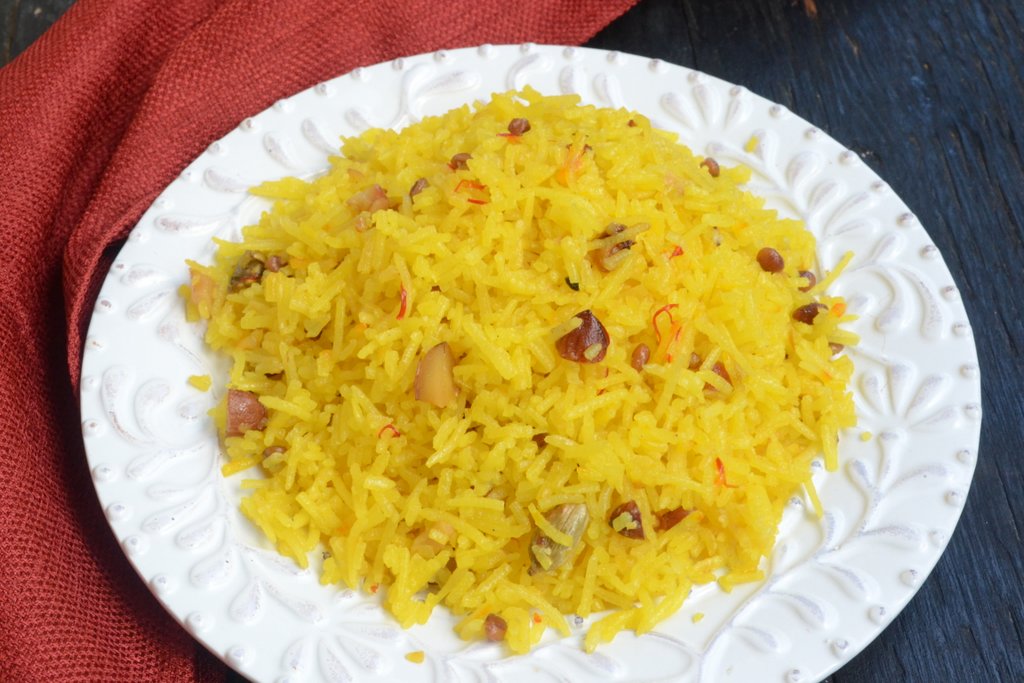 Zarda Pulao is a perfect recipe for festival season. This recipe has been passed on to me by my mother, and to her from her mother, and so on! It is also called meethe chawal or sweet rice. Loaded with lots of dry fruits and desi ghee, it brings out the taste of rose water, kesar and whole spices, and is one of my favorite dishes for the festival season. This can be quickly prepared at home and served any time during the day in this season or whenever guests arrive. I suggest that you give this amazing and wholesome pulao a try. I’m sure you will love it! So here is the recipe of Zarda Pulao.